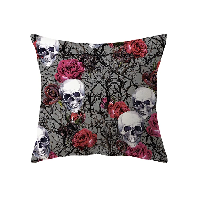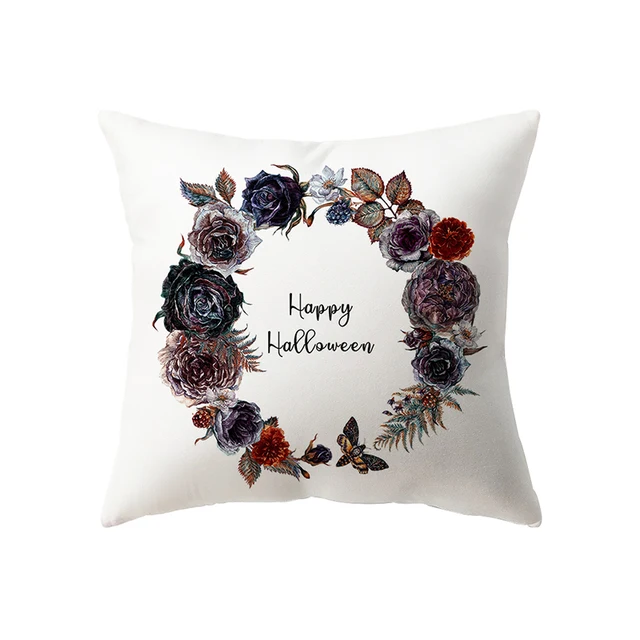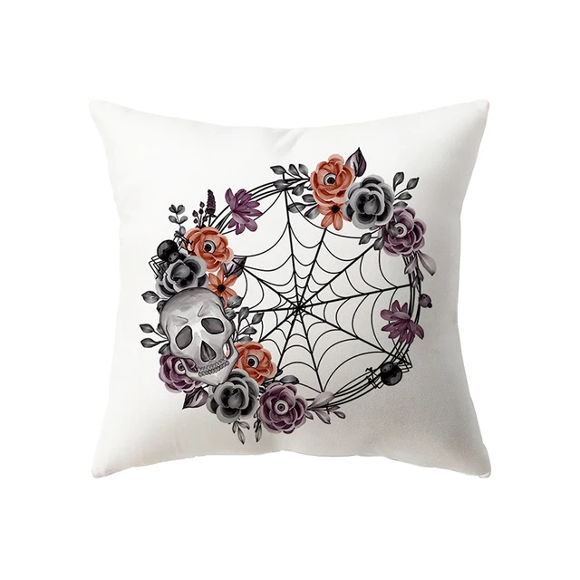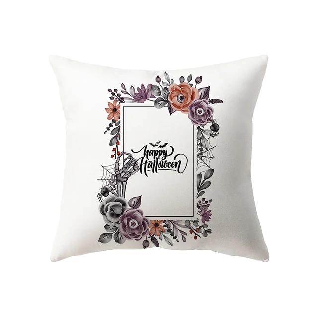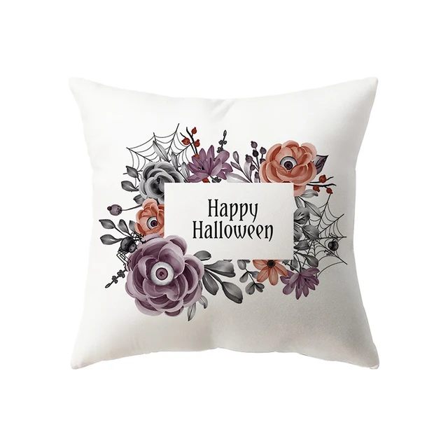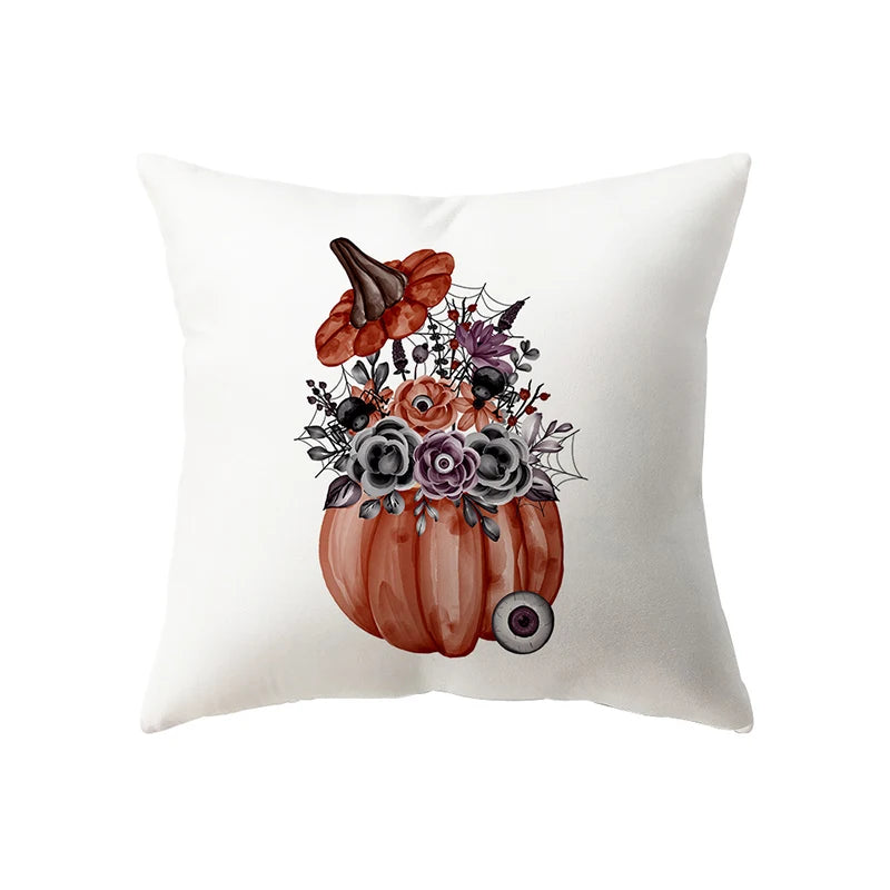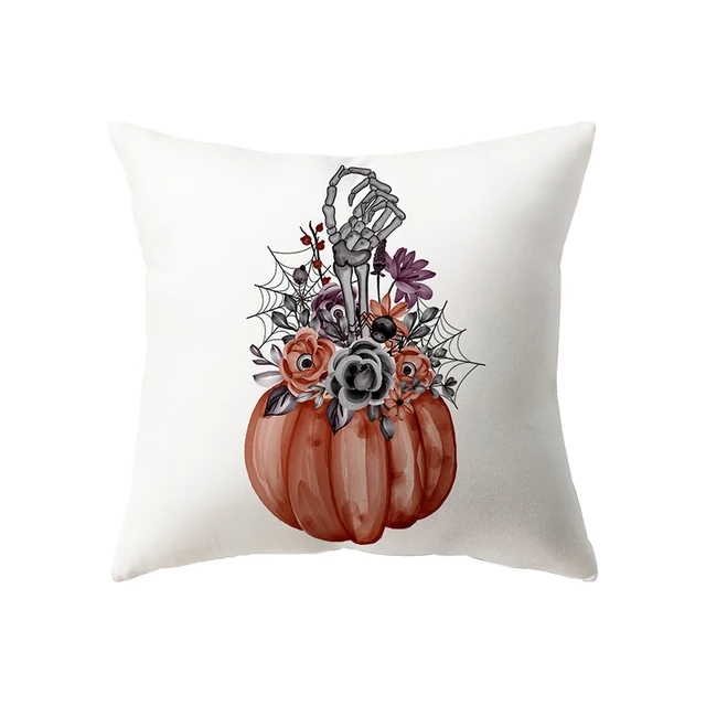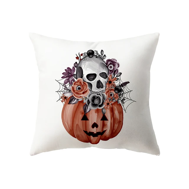 萬聖節恐怖南瓜頭骨印花圖案靠墊套家居客廳沙發裝飾(不含芯)